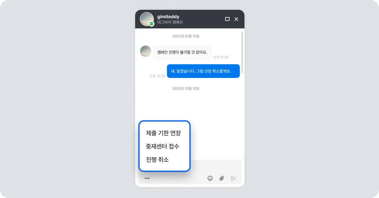 인플루언서가 제출해야 할 원고 및 링크도 채팅에서 직접 기한 연장이 가능해요.
