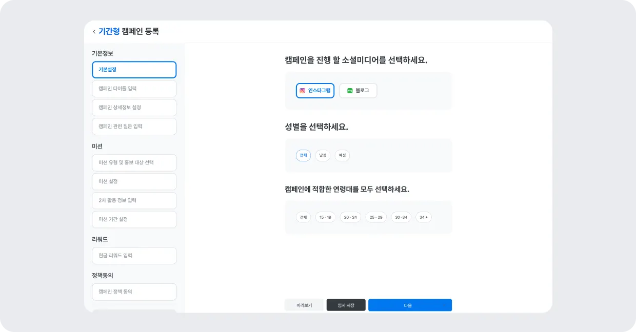 이제는 캠페인 등록을 빠르게 할 수 있게 개선되었어요.