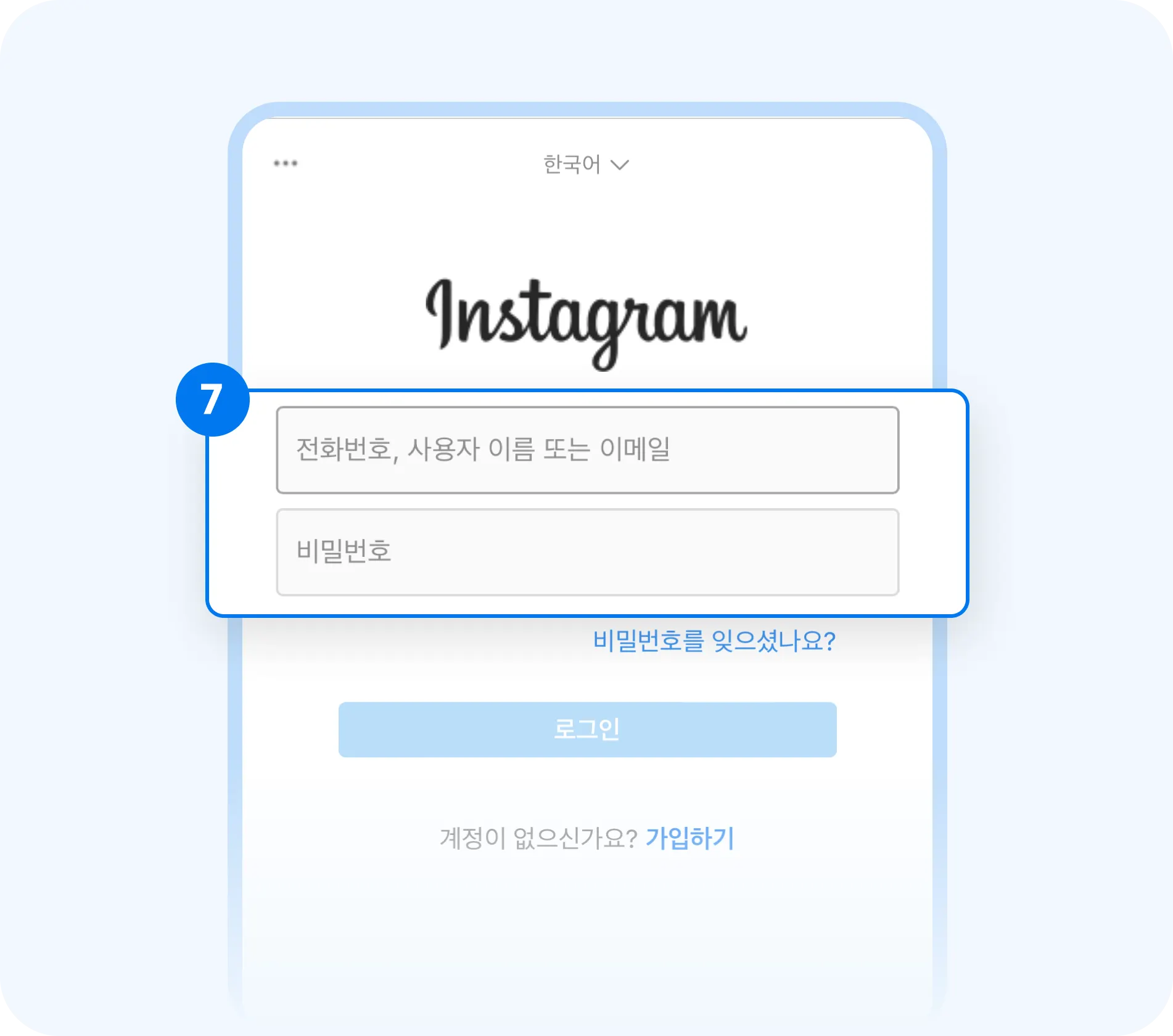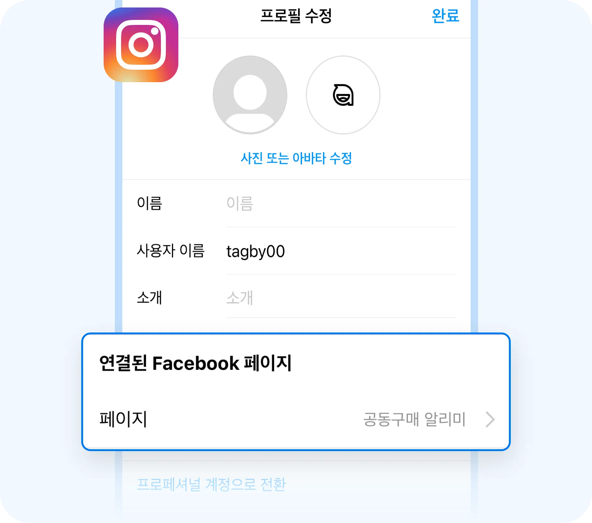 연결 시에 태그바이에 등록할 인스타그램 계정으로 로그인해 주세요.