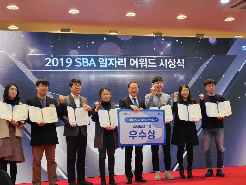 SETEC 컨벤션 센터에서 열린 ‘2019 SBA 일자리 어워드’ 시상식은 2019년 SBA 채용지원사업 참가기업 총 133개 기업을 대상으로 진행됐으며, 2019 일자리 창출 상위 20개 기업 중 설립 7주년을 기준으로 스타트업, 강소기업 부문으로 구분했다.