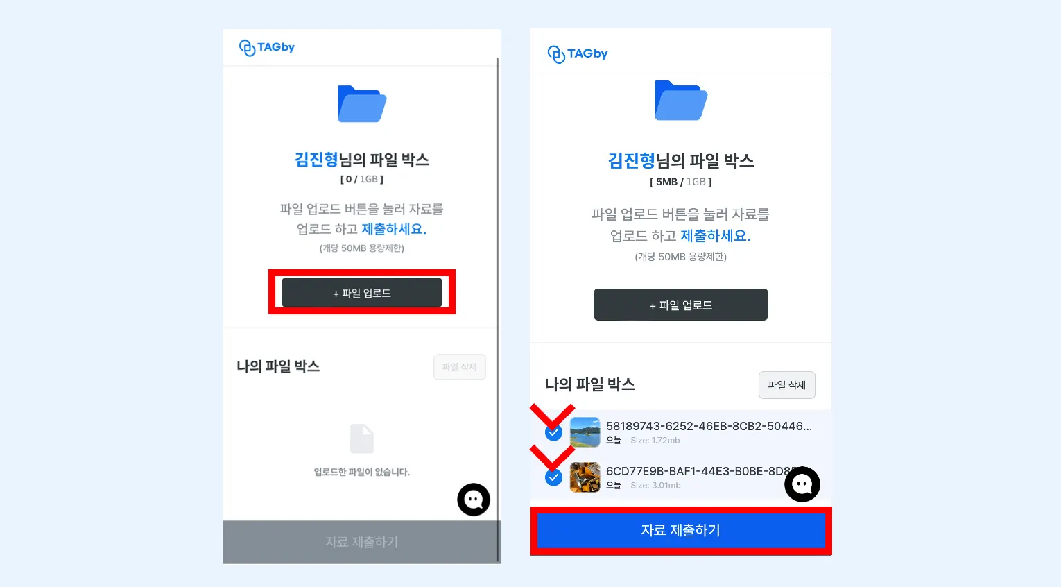 (PC에서 파일박스 접속 > 파일 업로드 > 다시 앱에서 파일 선택 > 자료제출)