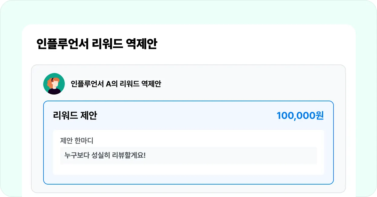 이제는 인플루언서도 광고주님에게 원하는 현금리워드를 직접 제안할 수 있어요.
