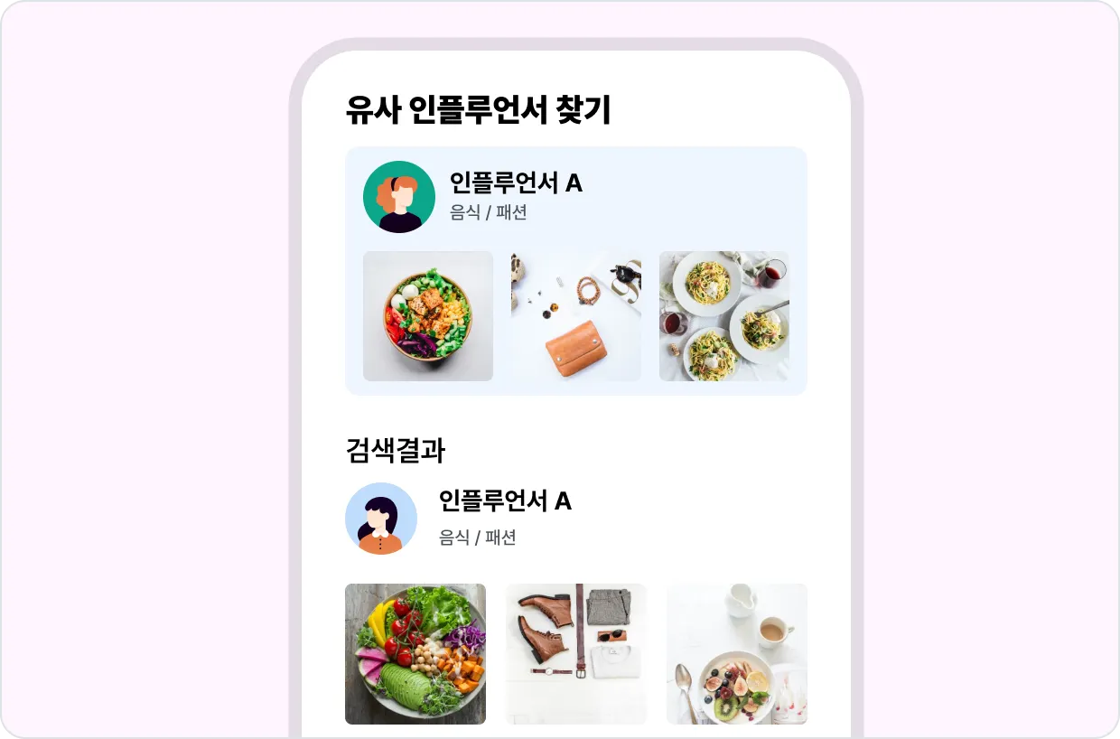 내가 원하는 인플루언서와 유사한 인플루언서를 찾는 기능이 이제 PC뿐만 아니라 모바일에서도