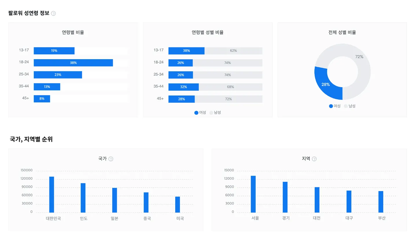 해당 캠페인에 참여한 인플루언서 팔로워들의 정보를 통해 어떤 사람들에게 광고가 도달했는지 분석할 수 있어요.