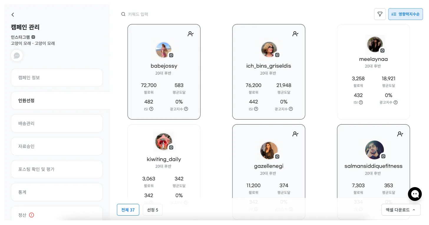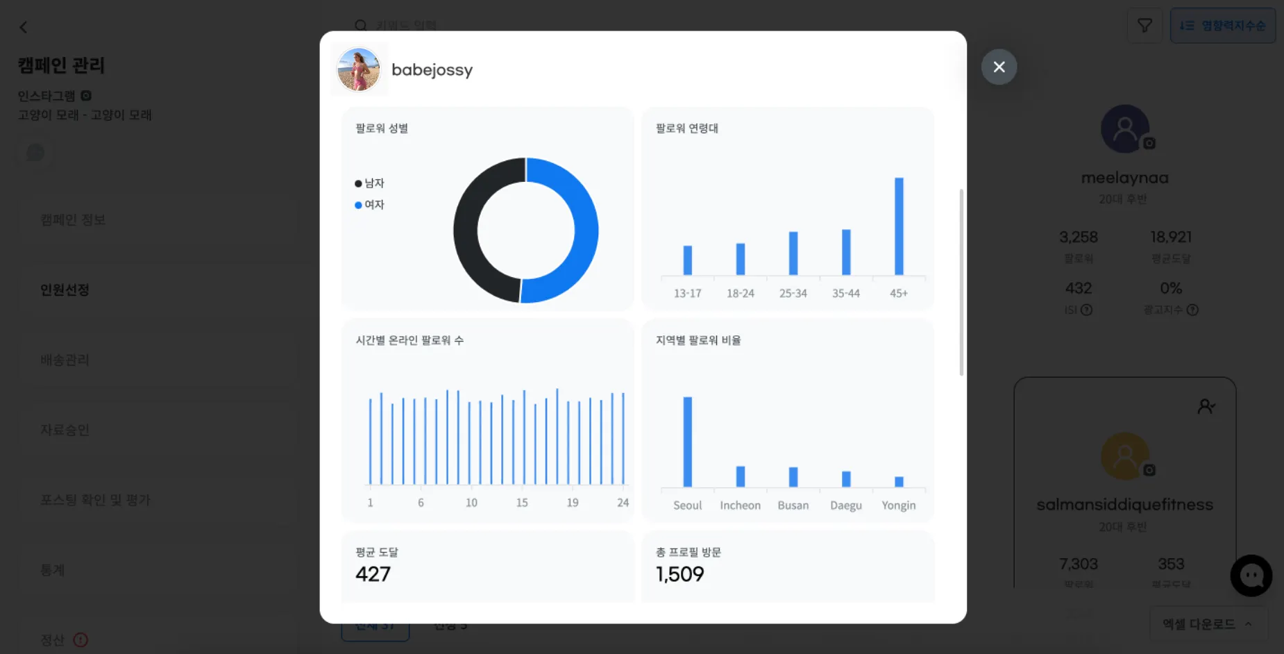 무료플랜에서도 인플루언서를 모집해 보고, 모집된 인플루언서 계정의 데이터까지 확인할 수 있어요