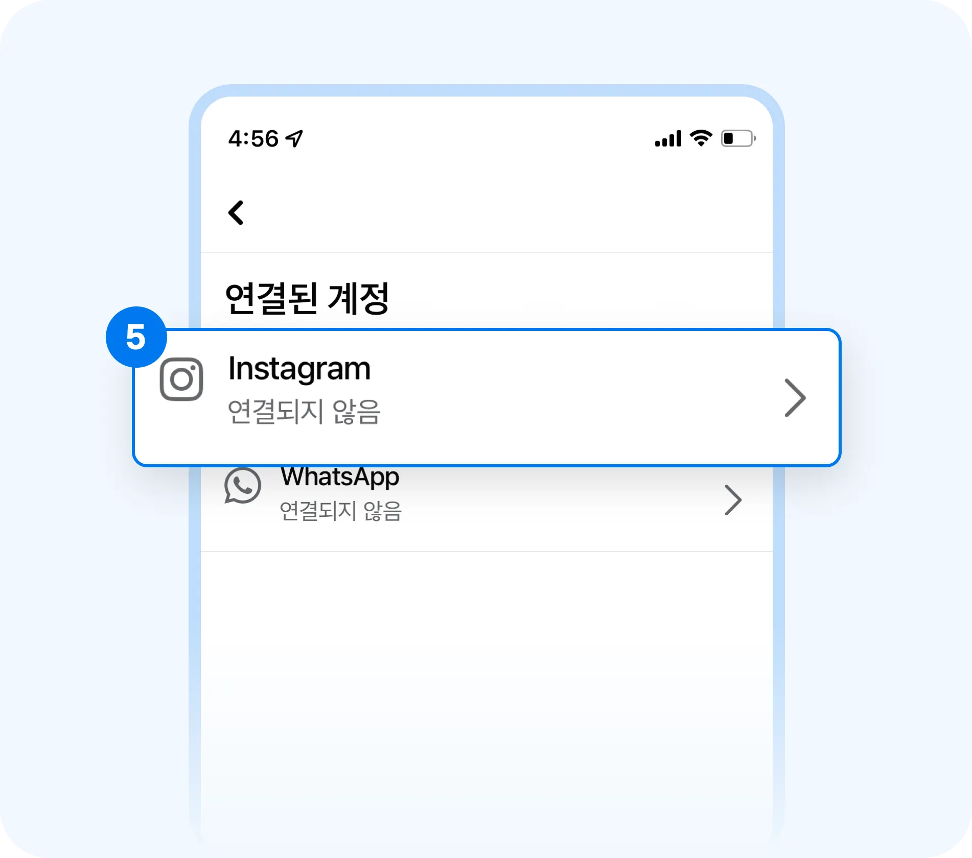 ⑤ 연결된 계정 페이지에서 인스타그램 선택