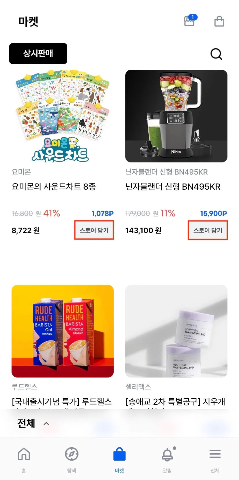 [마켓]에서 상시로 판매&공동구매 할 수 있는 제품들을 구경해보고 나와 딱 맞는 상품을 자신의 마이스토어에 담아주세요.