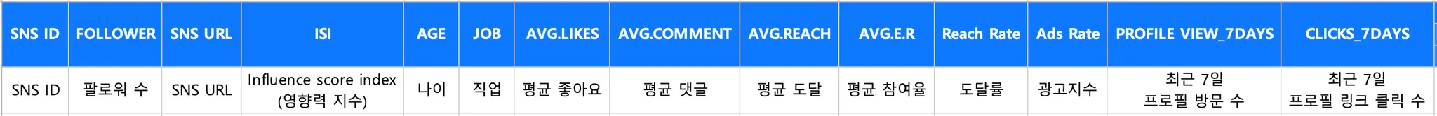 SNS 채널에 따라 분석 가능한 데이터가 달라요.