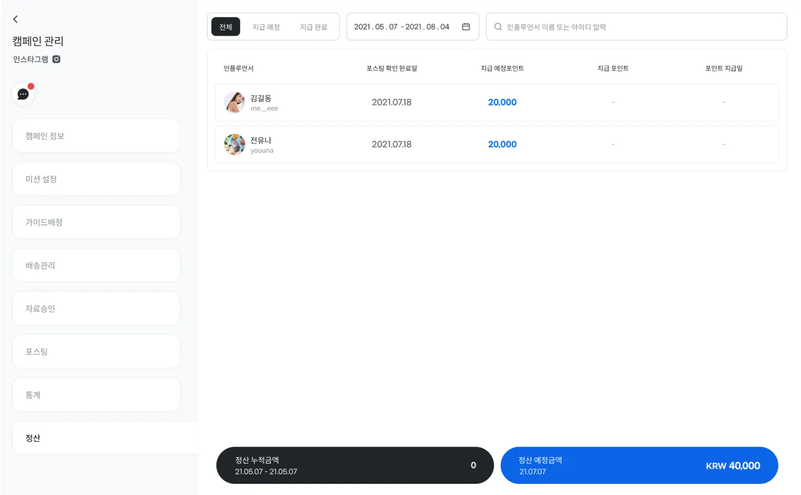 내 브랜드를 홍보해 줄 인플루언서를 시스템으로 쉽게 모집&운영할 수 있는 캠페인이에요.